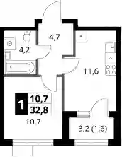 11 618 334 ₽1-к.квартира, 32.9 м², 3 эт.