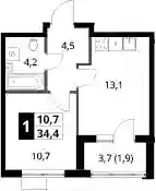 13 957 562 ₽1-к.квартира, 34.3 м², 10 эт.