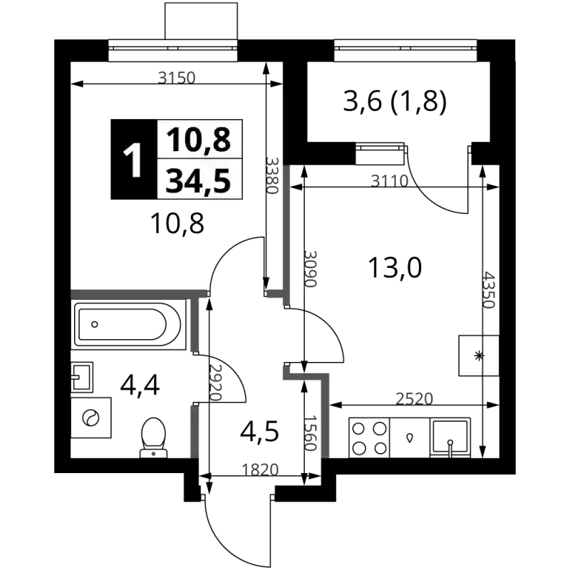 13 911 568 ₽1-к.квартира, 31.5 м², 3 эт.