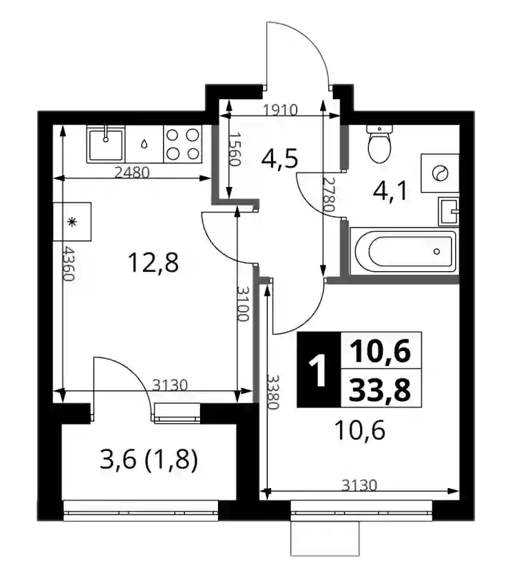 13 911 568 ₽1-к.квартира, 31.5 м², 3 эт.