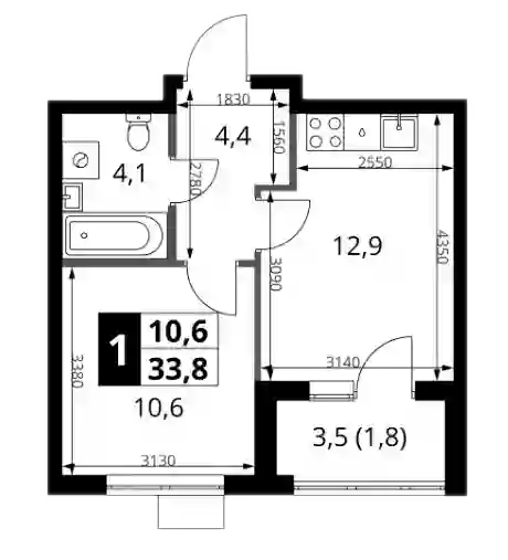 11 305 566 ₽1-к.квартира, 31.5 м², 18 эт.