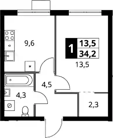 13 957 562 ₽1-к.квартира, 34.3 м², 10 эт.