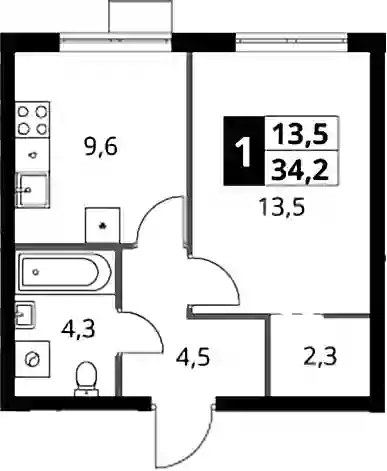 13 319 424 ₽1-к.квартира, 34.1 м², 15 эт.