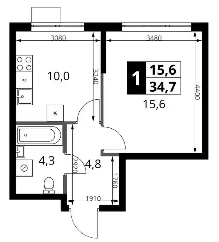 15 333 456 ₽1-к.квартира, 41 м², 4 эт.