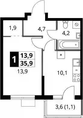 12 567 423 ₽1-к.квартира, 35.9 м², 11 эт.