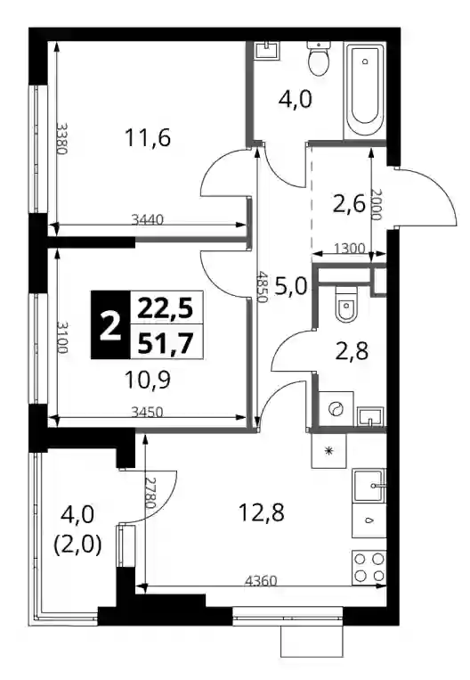 13 829 688 ₽2-к.квартира, 46.5 м², 18 эт.