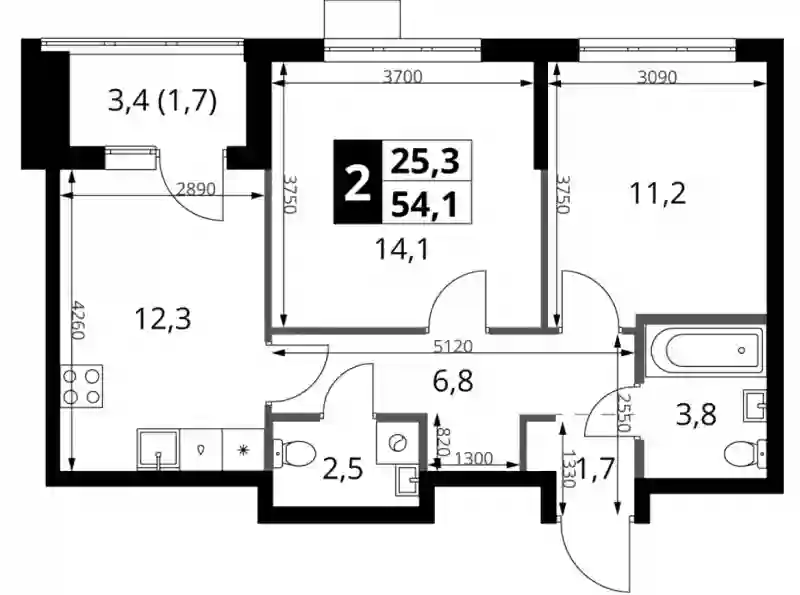 14 311 192 ₽2-к.квартира, 54.4 м², 16 эт.
