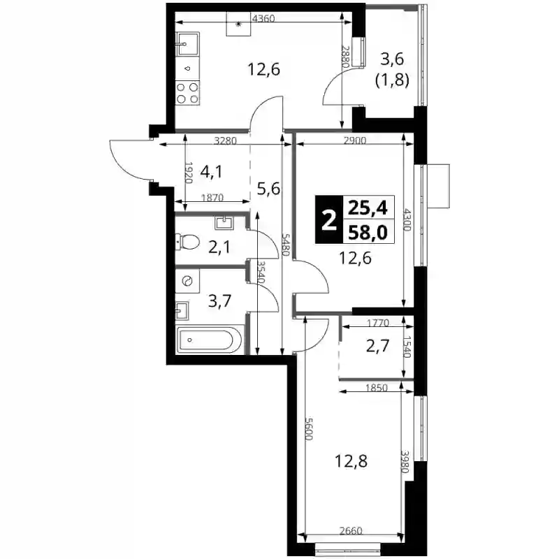18 253 704 ₽2-к.квартира, 56.9 м², 3 эт.