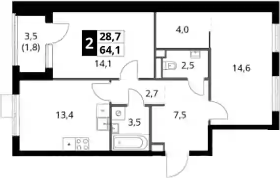 17 658 036 ₽3-к.квартира, 65.6 м², 6 эт.