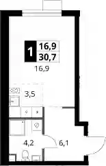 14 441 840 ₽1-к.квартира, 30.7 м², 16 эт.