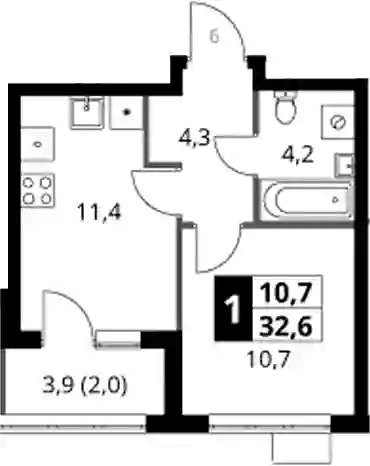 11 119 005 ₽1-к.квартира, 32.7 м², 2 эт.