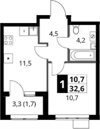 11 119 005 ₽1-к.квартира, 32.7 м², 2 эт.