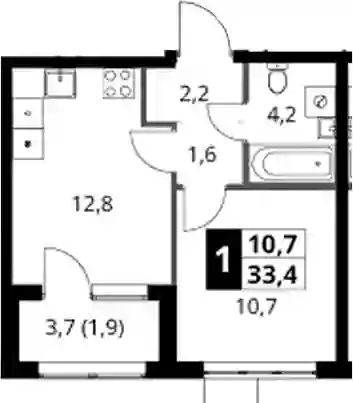 12 219 624 ₽1-к.квартира, 34.2 м², 6 эт.