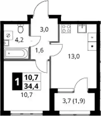 11 144 700 ₽1-к.квартира, 34.7 м², 4 эт.