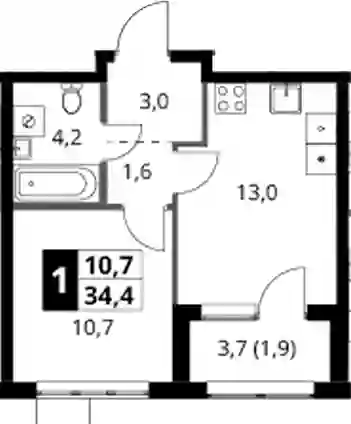 15 897 600 ₽1-к.квартира, 34.1 м², 13 эт.