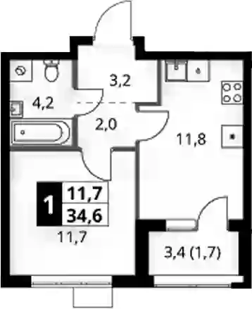 11 144 700 ₽1-к.квартира, 34.7 м², 4 эт.