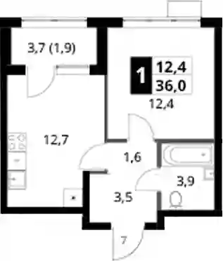 12 436 200 ₽1-к.квартира, 34.7 м², 7 эт.