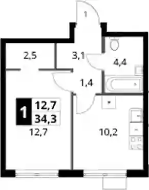 12 440 148 ₽1-к.квартира, 34.5 м², 18 эт.
