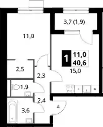 14 432 813 ₽1-к.квартира, 38.7 м², 11 эт.