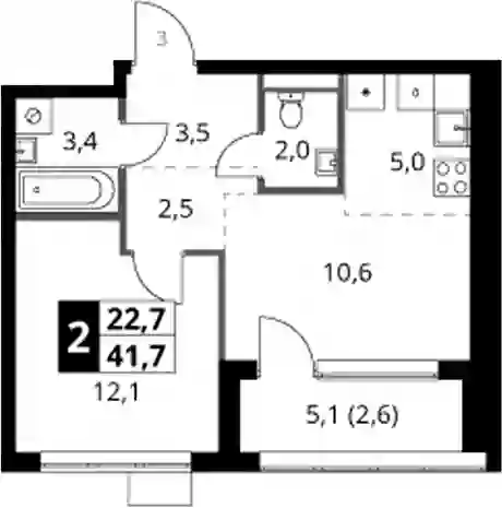 14 064 225 ₽1-к.квартира, 41 м², 2 эт.