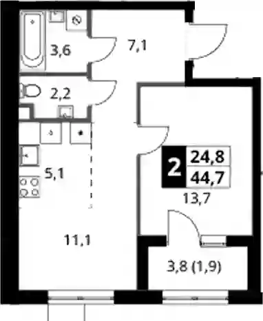13 829 688 ₽2-к.квартира, 46.5 м², 18 эт.