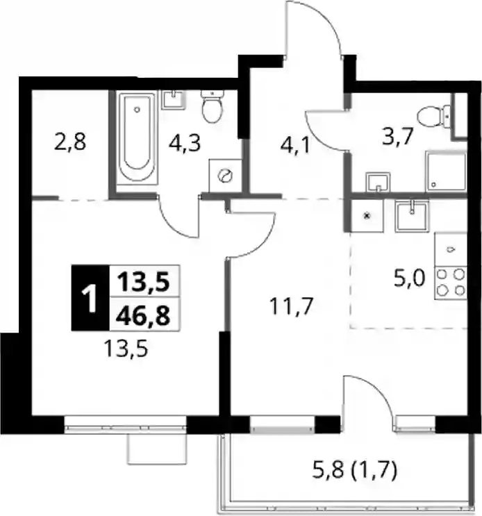 13 829 688 ₽2-к.квартира, 46.5 м², 18 эт.