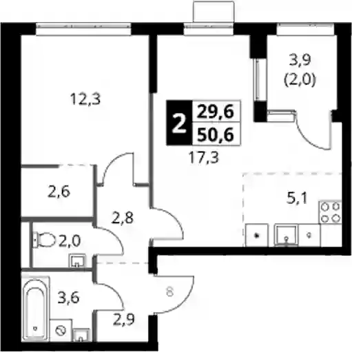 17 126 208 ₽2-к.квартира, 49.7 м², 2 эт.