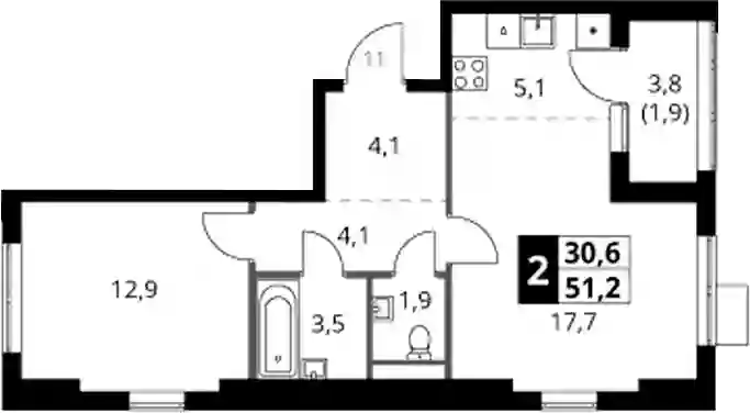 13 773 186 ₽2-к.квартира, 51.3 м², 17 эт.