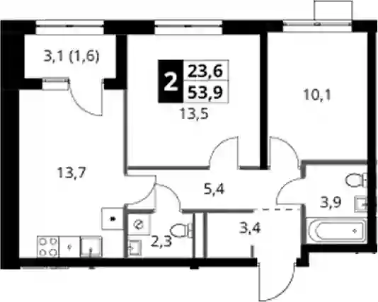 15 315 672 ₽2-к.квартира, 53 м², 16 эт.