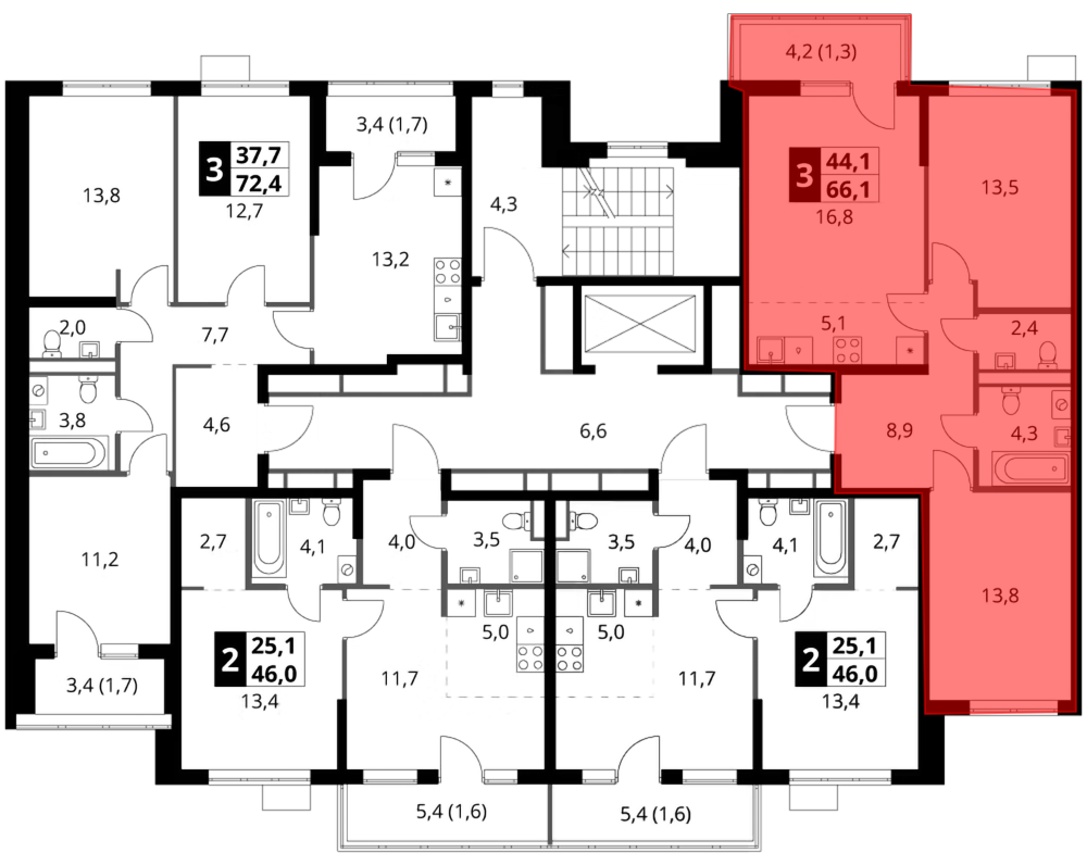 22 277 737 ₽3-к.квартира, 65.7 м², 6 эт.