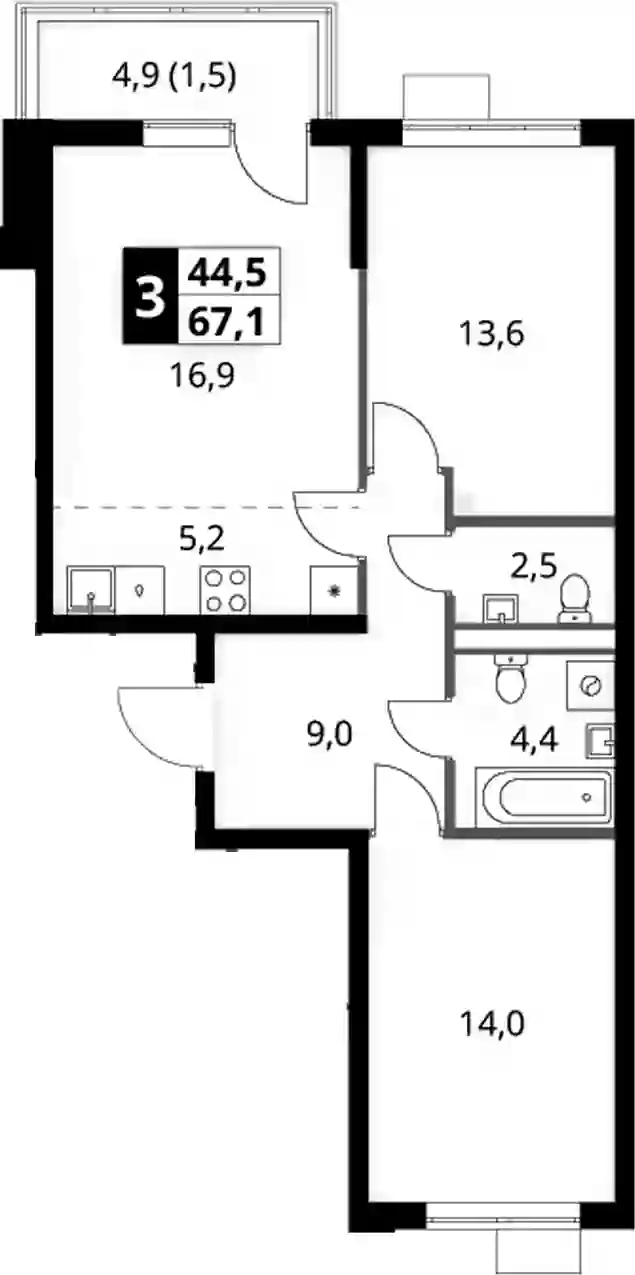 3-к.квартира, 65.6 м², 9 эт. в ЖК 1-й Ясеневский Корпус 2