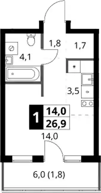 12 452 406 ₽Студия, 26.8 м², 14 эт.