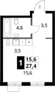 Студия, 27.4 м², 3 эт. в ЖК 1-й Ясеневский Корпус 2