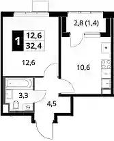 11 618 334 ₽1-к.квартира, 32.9 м², 3 эт.