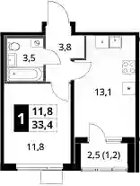 11 790 450 ₽1-к.квартира, 34.6 м², 8 эт.