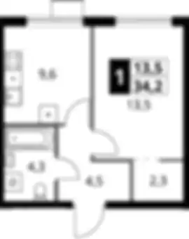 13 957 562 ₽1-к.квартира, 34.3 м², 10 эт.