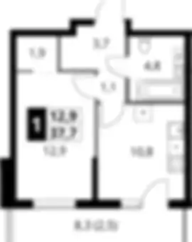 13 103 374 ₽1-к.квартира, 30.9 м², 2 эт.
