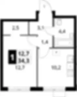 12 436 200 ₽1-к.квартира, 34.7 м², 7 эт.