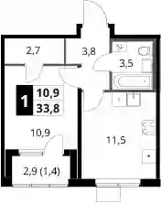 11 144 700 ₽1-к.квартира, 34.7 м², 4 эт.
