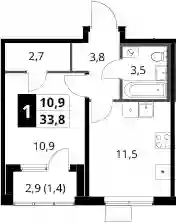 11 144 700 ₽1-к.квартира, 34.7 м², 4 эт.