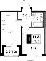 13 609 546 ₽1-к.квартира, 33.6 м², 2 эт.