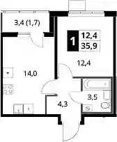 1-к.квартира, 34.2 м², 16 эт. в ЖК 1-й Ясеневский Корпус 3