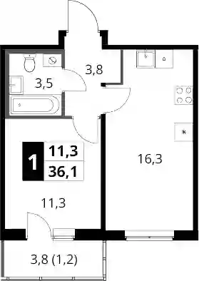 11 790 603 ₽1-к.квартира, 36.3 м², 4 эт.
