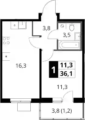 1-к.квартира, 34.9 м², 3 эт. в ЖК 1-й Ясеневский Корпус 3