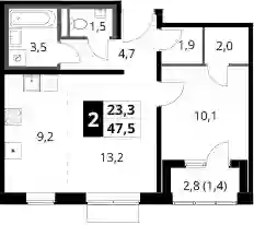 14 577 203 ₽2-к.квартира, 48.6 м², 2 эт.