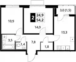 20 557 600 ₽2-к.квартира, 54.4 м², 3 эт.