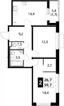2-к.квартира, 58 м², 15 эт. в ЖК 1-й Ясеневский Корпус 3