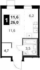 12 332 659 ₽Студия, 25.1 м², 11 эт.