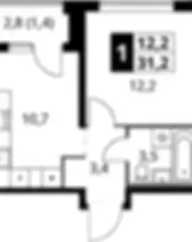 10 753 604 ₽1-к.квартира, 34.3 м², 12 эт.