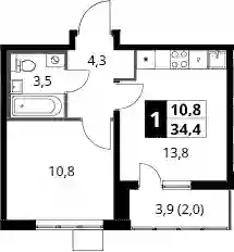 10 868 880 ₽1-к.квартира, 34.3 м², 18 эт.